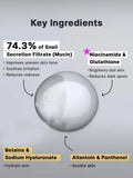 High-efficacy snail essence mixes with the radiance essence upon pumping to create a combination of plumping and brightening care.